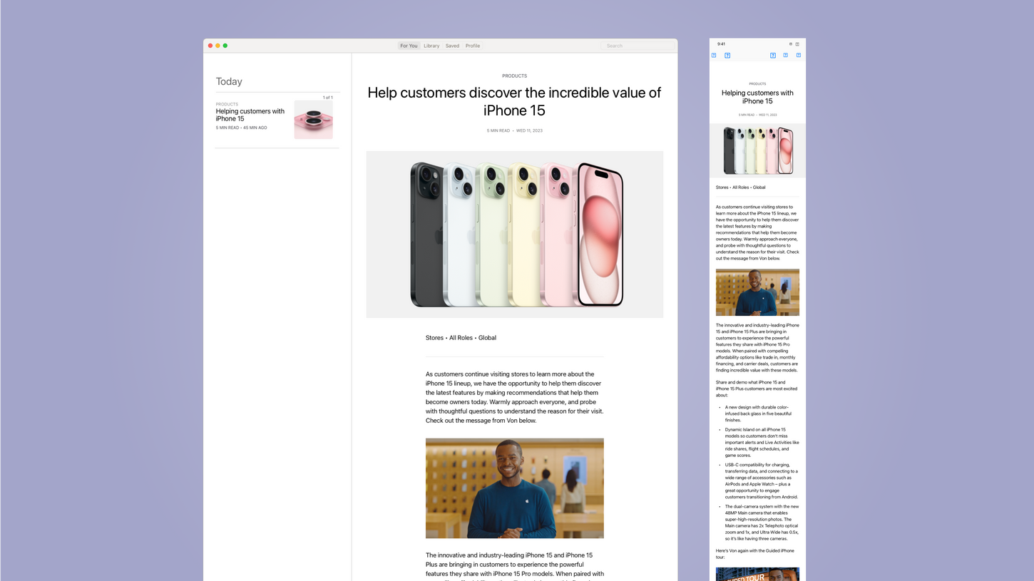 Apple’s Retail Engagement Management team (REM) in Cupertino, California supported the development of user-centered interface designs and communications across Apple’s internal retail application, Hello.